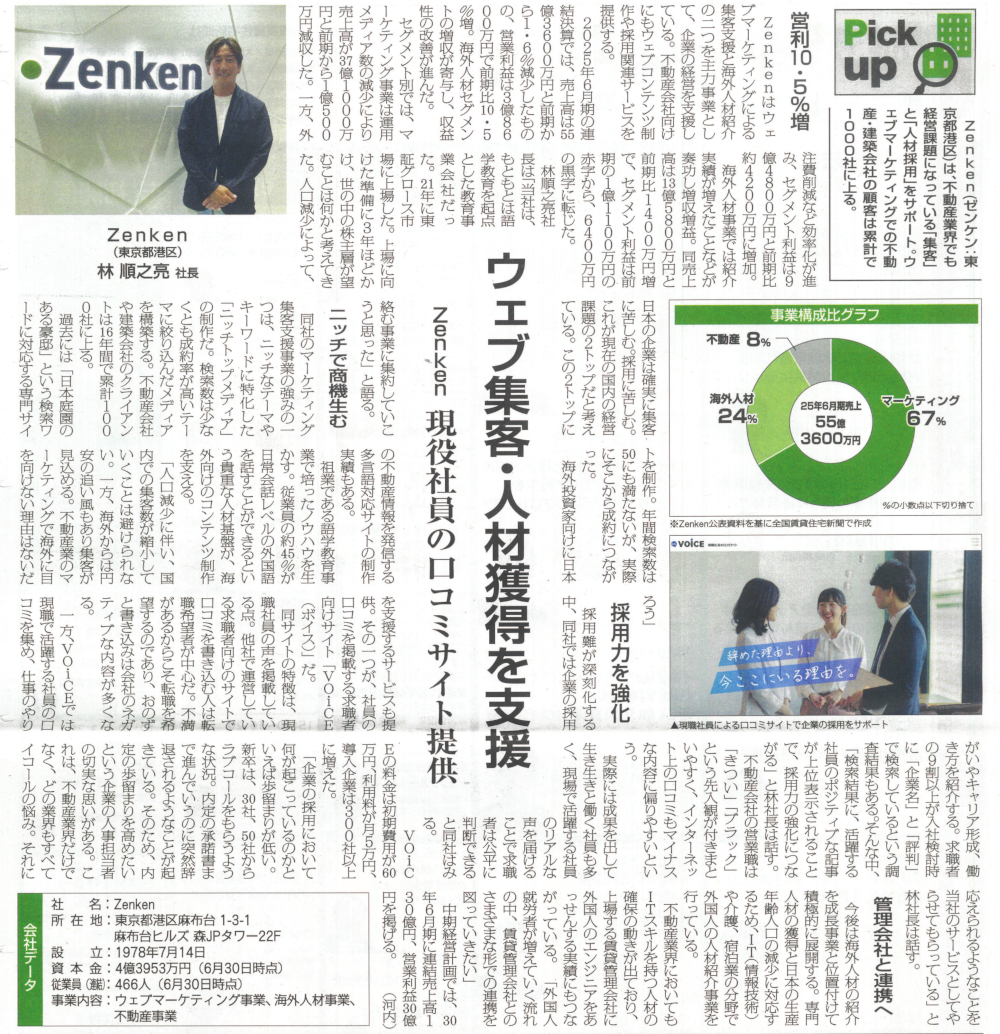 全国賃貸住宅新聞にて、当社に関する記事が掲載されましたのでお知らせいたします。